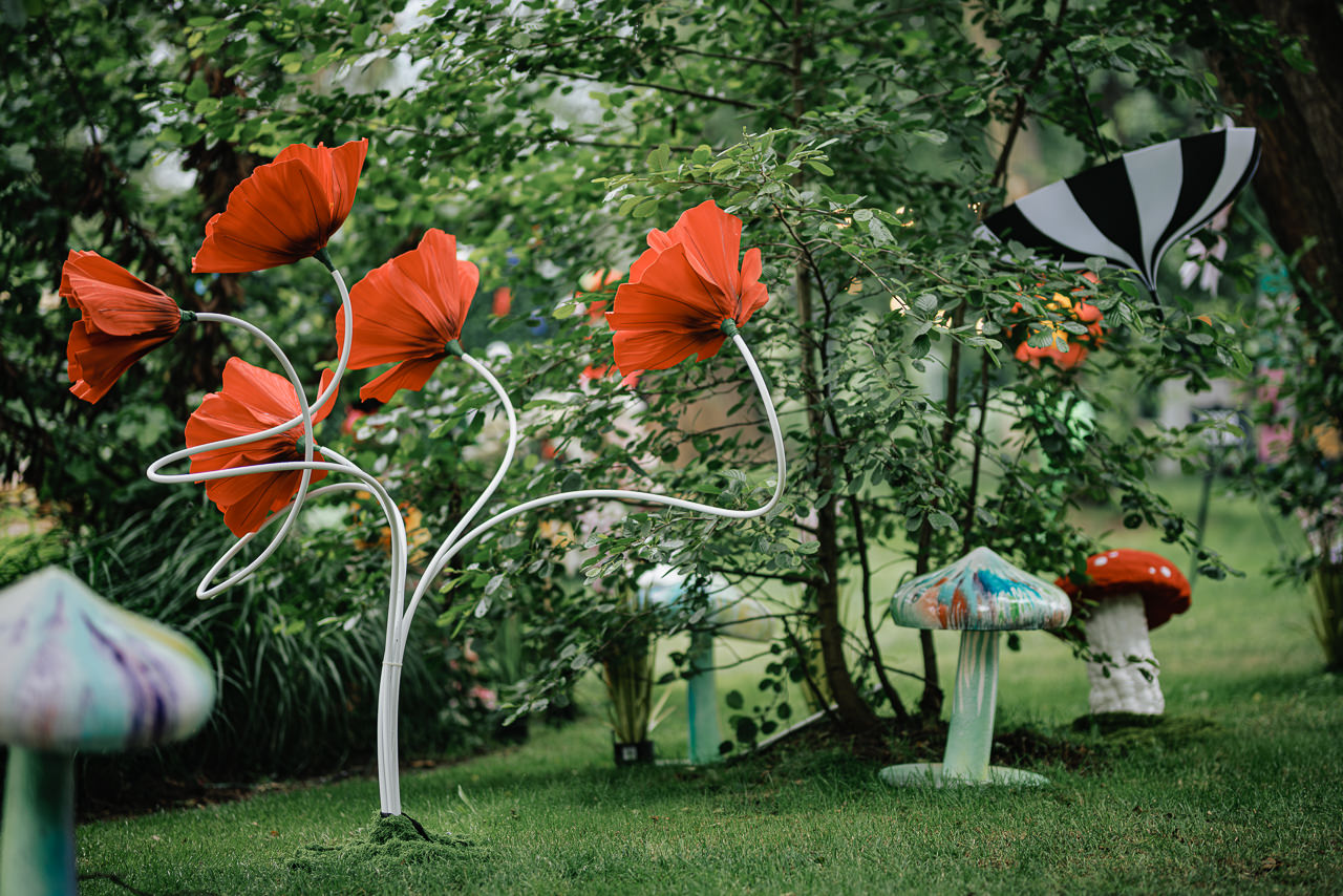 Na wejściu witani byli przez szczudlarzy w strojach jak z bajki, a dalej… było już tylko bardziej magicznie: podświetlane drzewa, które reagowały na muzykę, artyści cyrkowi przechodzący między alejkami jakby mimochodem, strefa Alicji w Krainie Czarów, gdzie wszystko było lekko przewrotnie piękne. Nie zabrakło też miejsc na uważność i detal..